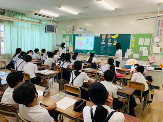 今週は栄養教諭と養護教諭の2人に来ていただき、体のメッセージを受け取って自分の健康について考える学習をしました。