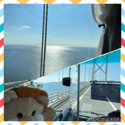 明石海峡大橋を渡り、もうすぐトイレ休憩だよ!