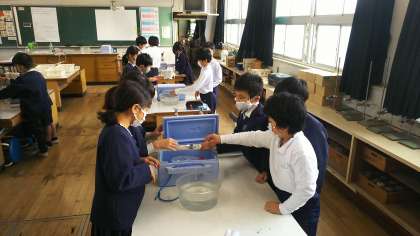 4年生になり、初めての理科室での実験でしたが、先生の指示をよく聞いて、協力して準備をしたり、実験に取り組んだり、片づけをしたりすることができていました。
