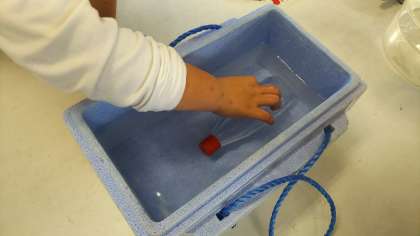 空気と水を温めたり、冷やしたりした時の体積の変化を確かめました。