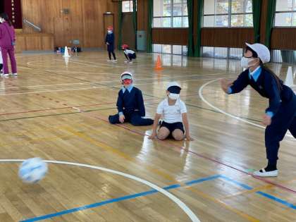 ゴールボールは、目隠しをしながら鈴の入ったボールを転がして、
