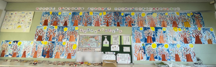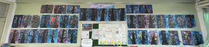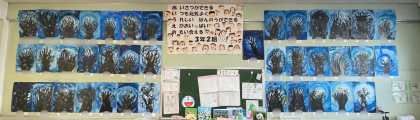図画工作科では、モチモチの木の絵を描きました。各クラス、それぞれが綺麗に火か灯るモチモチの木を描くことが出来ました。
