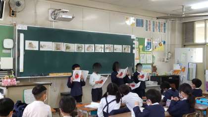 国語科では、かえるくんとがまくんが登場するお話「お手紙」の音読発表会をしました。