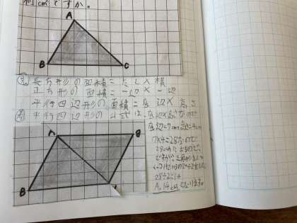 算数科では、平行四辺形や三角形、台形の面積の求め方を学習しています。