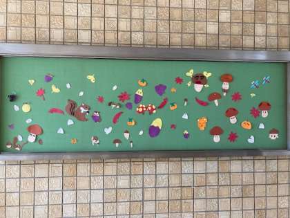 掲示委員会では、毎月題材を決めてピロティの掲示板を飾っています。11月には秋の風景、12月にはクリスマスの様子を楽しんで作りました。実は、年越しそばも作っています。ぜひ、見つけてくださいね。3学期もお楽しみに。