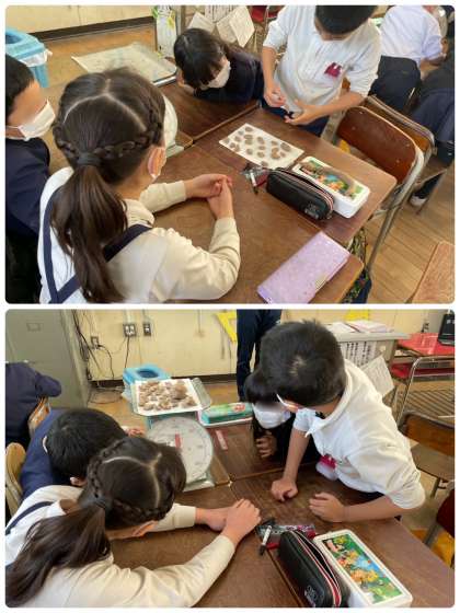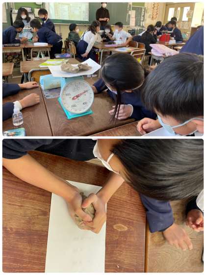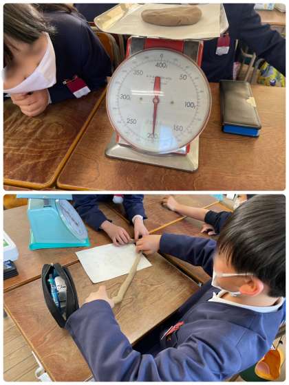 理科の学習では、ねんどを使ってものの重さを調べました。
