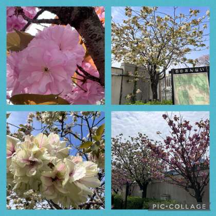 平野小学校の八重桜も満開です。きれいだなぁ。