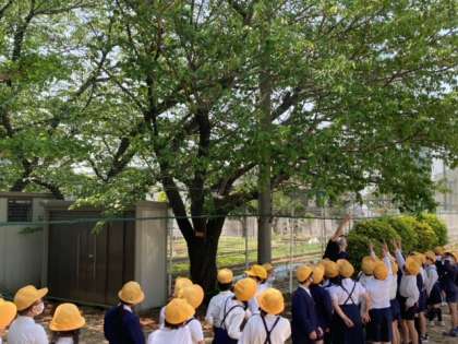 4年生の理科では1年間かけて植物の変化を観察します。この日はサクラやイチョウを観察しました。夏にはどのように変化していくのでしょうか?