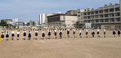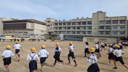 新体力テストのシャトルランの練習として、かけあしタイムをおこないました。