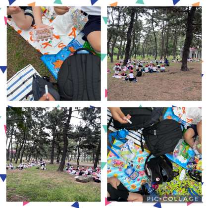 午前中遊具で遊んだあとは、お楽しみのお弁当&おやつたいむ。