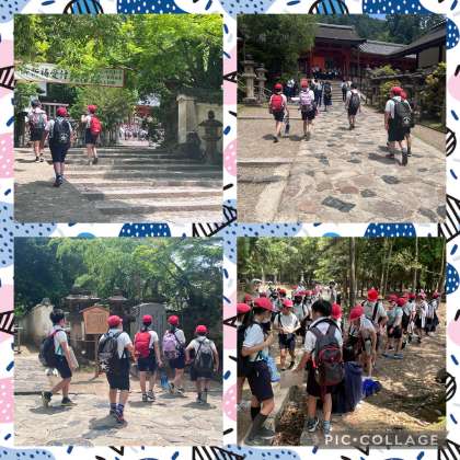 みんなでクイズを考えながら、オリエンテーリング。このあとは、おやつたいむだよ。