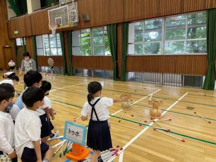 子どもたちは、初めて見る遊びやたいこにも興味津々でした。