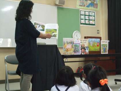 おはなし宝箱の方々に「ヘンゼルとグレーテル」「キラキラ」「こうしてぼくはかいぞくになった」「さよならジャンボ」という絵本や紙芝居を読んでいただきました。絵本のセリフに合わせてかけ声を叫ぶことで、子どもたちはどんどん絵本の世界に入り込んでいきました。