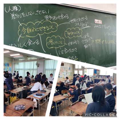「1秒1秒を大切にしたい。」「好き嫌いをせず残さず食べたい。」「今生きていることがすごくすごく幸せなんだなぁ。」1人1人自分で考え、みんなで共有しました。