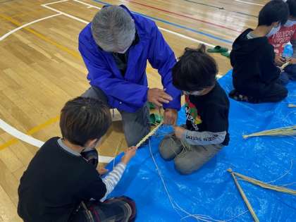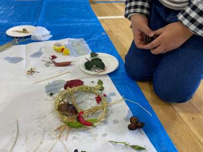 5年生が授業で大事に育てたお米の稲を使って、リース作りをしました。