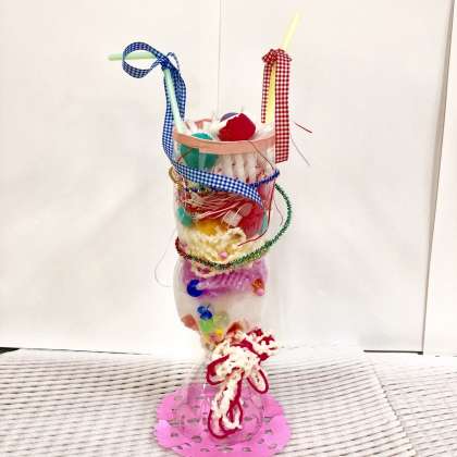 図画工作科の学習で、「おしゃれなパフェ」という作品を作ります。