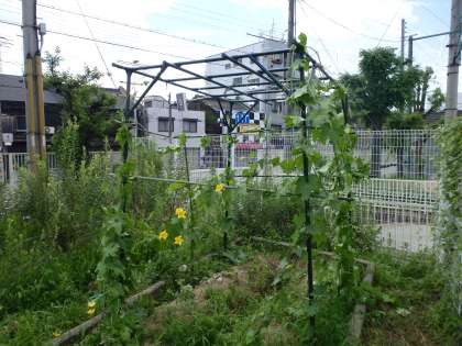 夏になり、学習園のヘチマもずいぶんと草丈が伸びました。