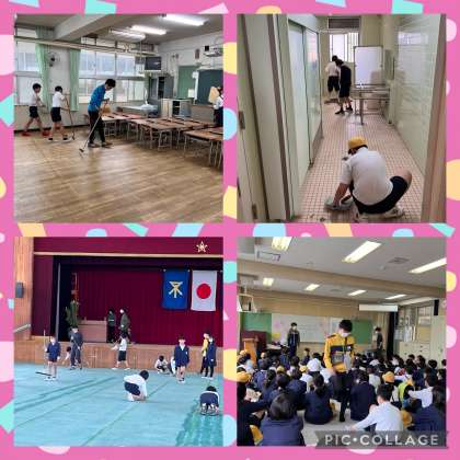 入学式の前日準備をしました。教職員と共に、新6年生が在校生を代表して、会場準備や清掃に取り組みました。新入生のことを考えながら、行動している姿がさすが最高学年!かっこいい!明日の入学式が素敵な時間になりますように。