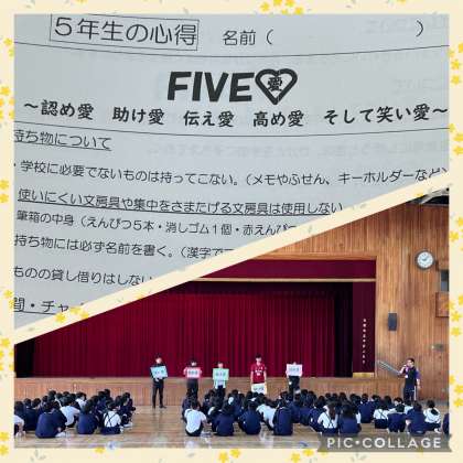 学年目標や学校、学年のルールのお話などがありました。話を聞く姿がさすが高学年!これからが楽しみです。