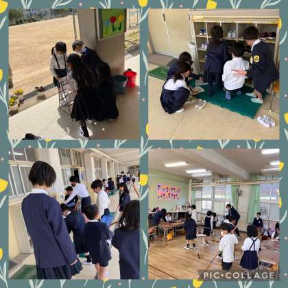 6年生が1年生にそうじの仕方をつたえていました。一緒にそうじをしながら、優しくサポートしている姿がさすが、最高学年!