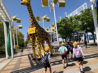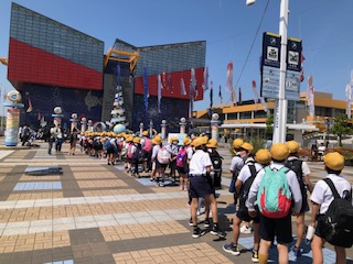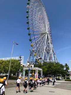 大阪港駅を降り、観覧車の横を通ると海遊館が見えてきます。