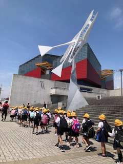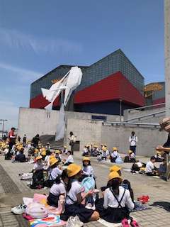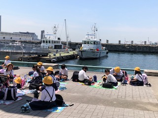 少し暑い5月の青空の下、みんなでうれしいお弁当の時間でした。