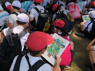 実行委員さんのお話を聞いて、オリエンテーリングに出発しました。