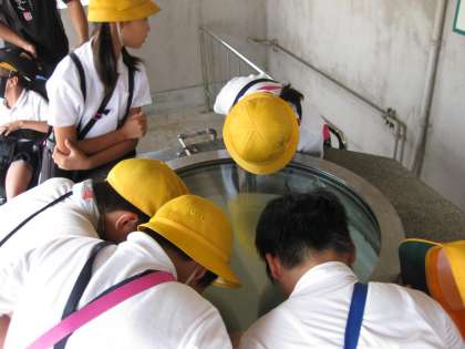 心配されていた天候にも恵まれ、柴島浄水場へ社会見学に行ってきました。事前に社会科で浄水場について学習していたので、教科書に載っている浄水場が見えたときは、「すげぇ〜、本物や!」と歓声が上がりました。中に入ると、プロジェクターを使った説明を聞いたり、場内見学をしたりと学習してきた内容理解がさらに深まりました。また、最後の体験学習を通して水がきれいになっていく過程も知ることができました。