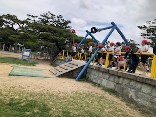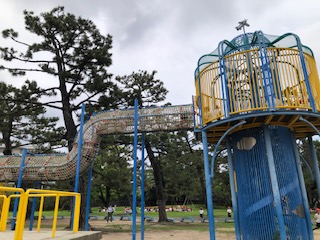 長いすべり台と、ターザンロープは、やっぱり人気です。