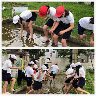 入らなかった子も、やっぱり田んぼの泥を体験してみました。