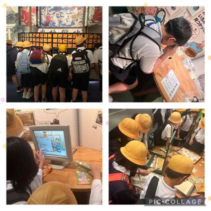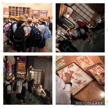 展示物や映像、遊びから、大阪の歴史に触れています。「こんな服着ててんな。」「この電話見たことある!」