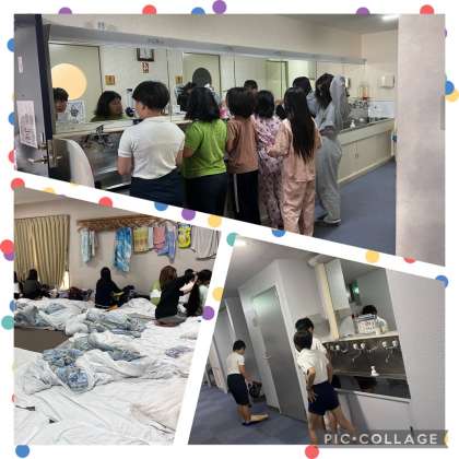 起床し、朝の支度、お布団の整理をしています。