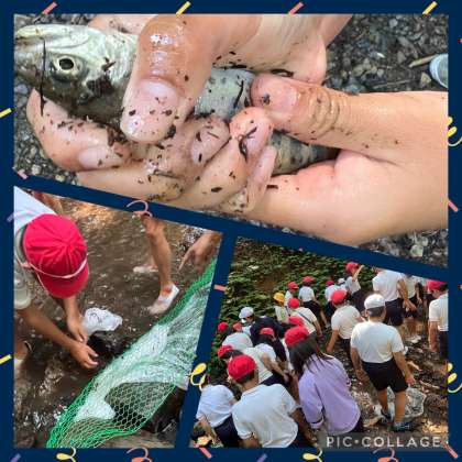 いよいよ魚つかみです。「水が冷たい!」「なかなかとれない!」
