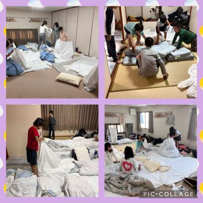 起床の6時になりました。朝の身支度、布団の片付け、一昨日より昨日、昨日より今日、素早く協力しながら動いてます。