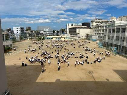 1〜6年生のみんなで力を合わせて、たくさんの石を集めてくれました。
