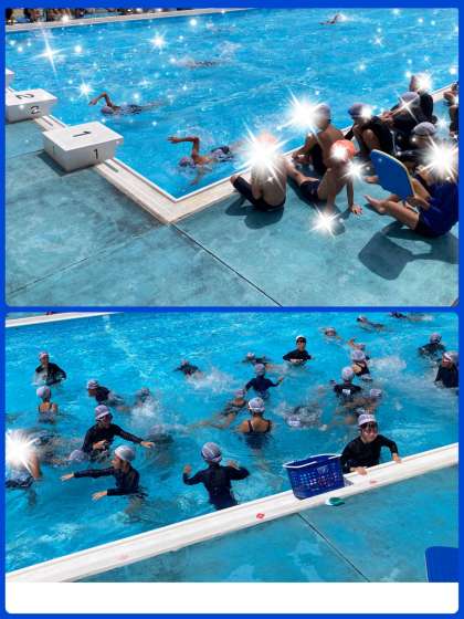 4年生では「平野水泳2023」と題して、水泳大会、そしてプール納めがありました。