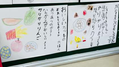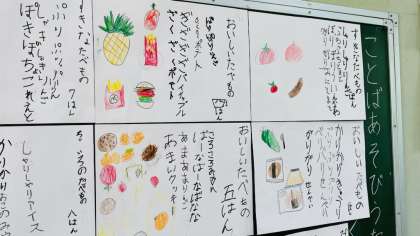 ものを見て感じた音や様子を言葉に表して、ことばあそびうたを作りました。