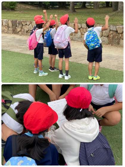 大仙公園に着いたら、オリエンテーリングの始まりです。