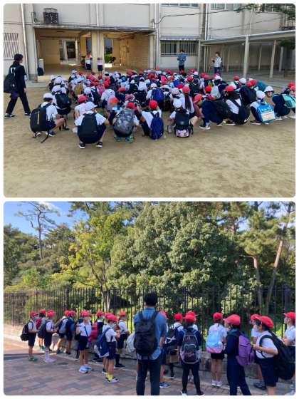 班のメンバーでポーズを合わせて出発〜!みんなでなぞなぞに挑戦しました。