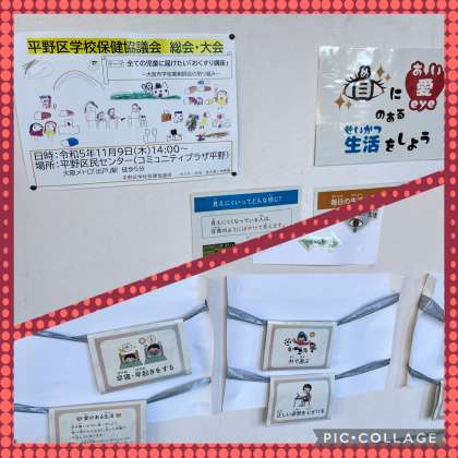 保健室前の掲示には、目に愛(eye)のある生活をしてほしい!の願いを込めて掲示をしています。目が見えにくくなってることはないかな?
