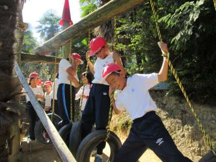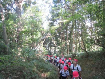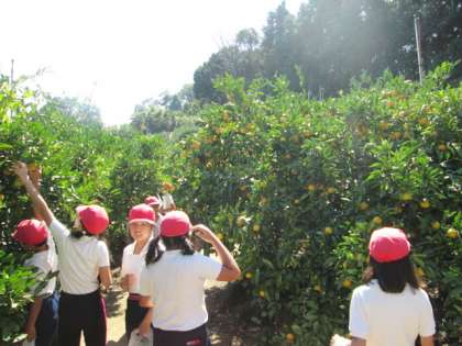 晴天に恵まれ、秋の遠足を予定通り実施することができました。目的地の駅を降りて1時間弱ほど山を登ると、柑橘系のいい匂いが一帯に広がっていました。また視界に一面のミカン畑が広がると、子どもたちからは「みかんがいっぱい!」「おいしそう!」との声が上がりました。みかん狩りをしてお弁当を食べた後は、オレンジ園のアスレチックで時間いっぱいまで楽しく遊びました。