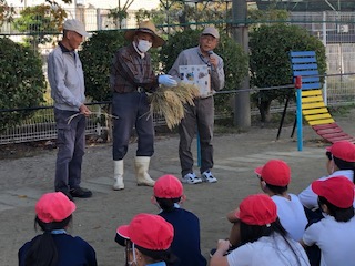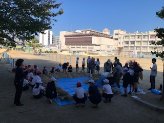 そして11月1日、今日も地域の皆さんに教えていただいての脱穀作業です。