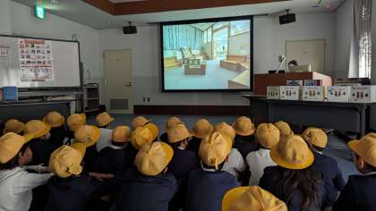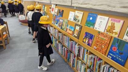 図書館では、本を読む時間と職員さんからお話を聞く時間があり、どちらの時間も子どもたちは楽しく過ごしていました。