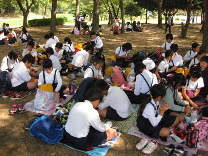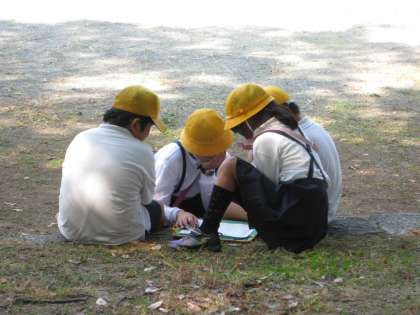 公園内で子どもたちは計5か所のポイントを回り、初めての班活動・オリエンテーリングを楽しみました!