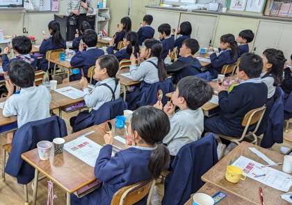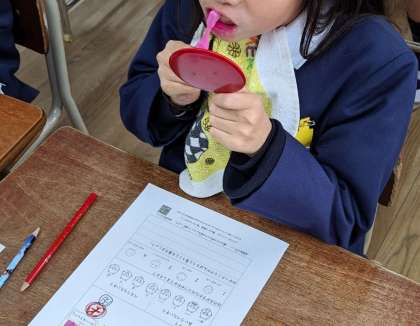虫歯ができる原因から、よごれを防ぐための歯みがきの仕方を学びました。