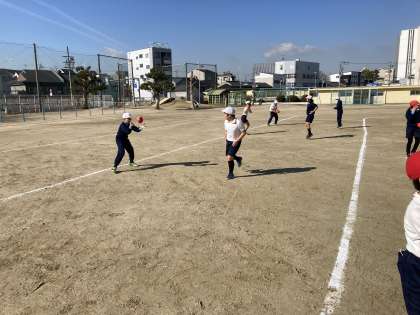 4年生では、体育科の学習で「フラッグフットボール」を始めました。