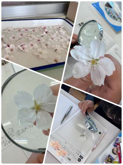 サクラの観察では、虫眼鏡とピンセットを使いました。