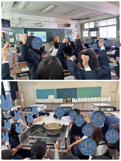 5年生では、今年から成績がつく外国語科の時間にミニゲームを楽しんだり、新しい教科「家庭科」の時間に点火の仕方を学んだりしています。