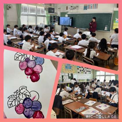 ?「見て見て。この色が気に入ってるねん。」「うまくかけたよ。」「これがね、、、」みんな、作品を見ながら自分や友だちのよさを感じ見つけていました。