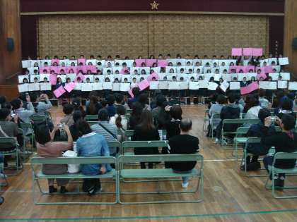 5年生は3クラス合同で、人権学習発表会のリハーサルを行いました。